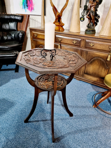 Heavily Carved Ebonised Side Table