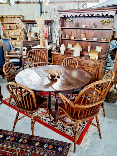 Antique Oak Refectory Dining Table & Six Stick Back Windsor Chairs
