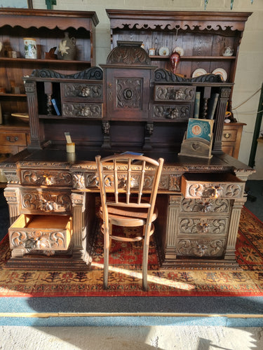Victorian Large Heavily Carved Oak Green Man Twin Pedestal Desk