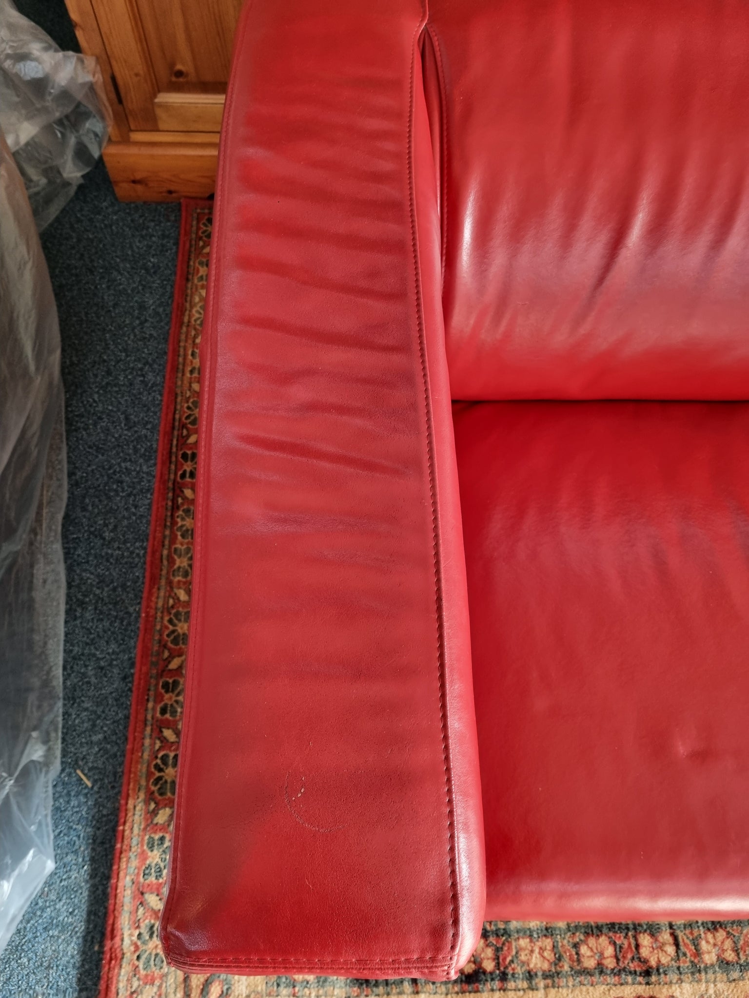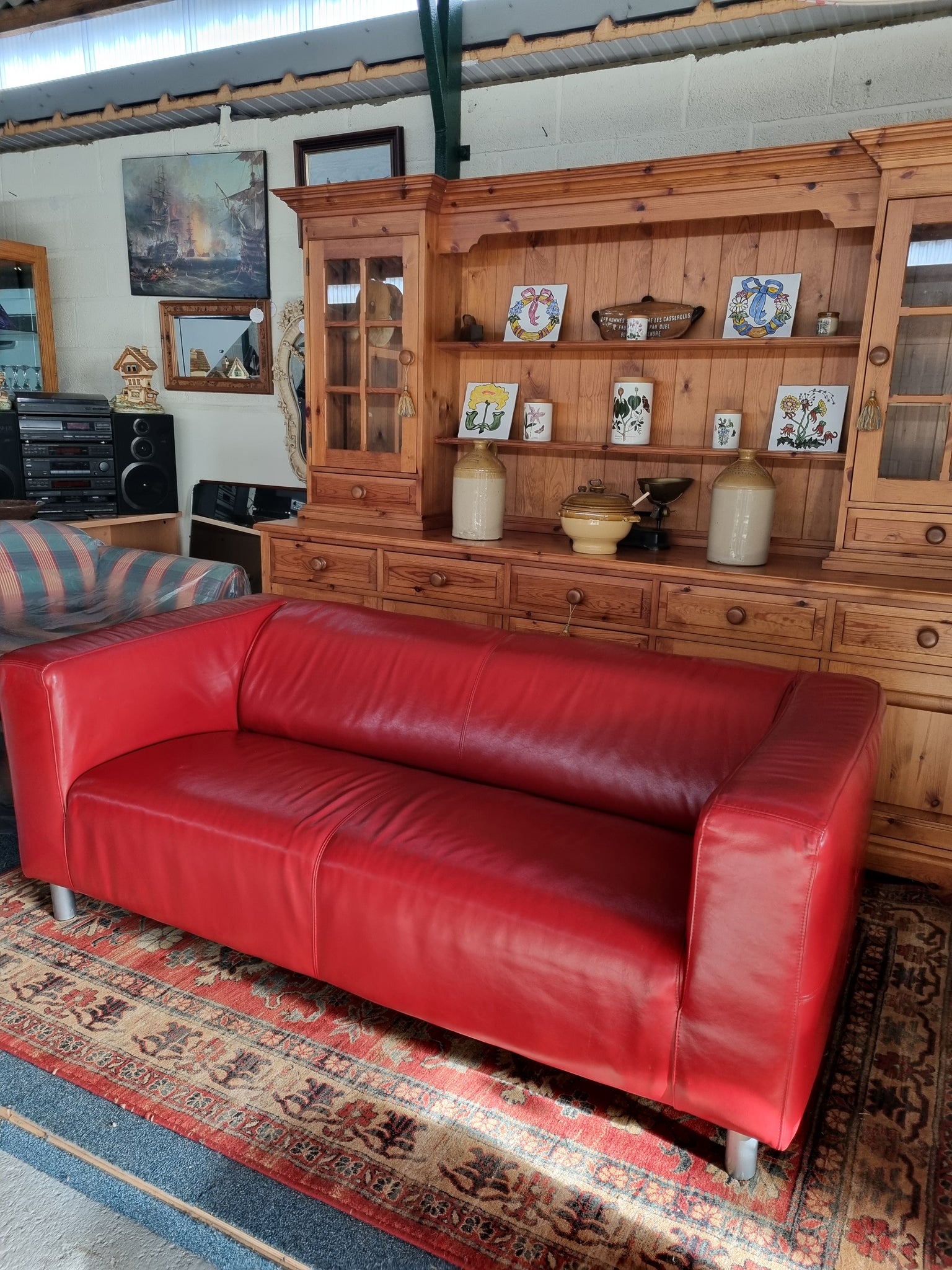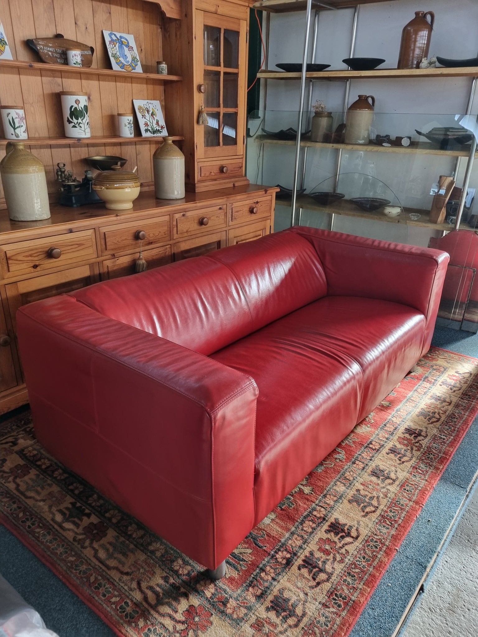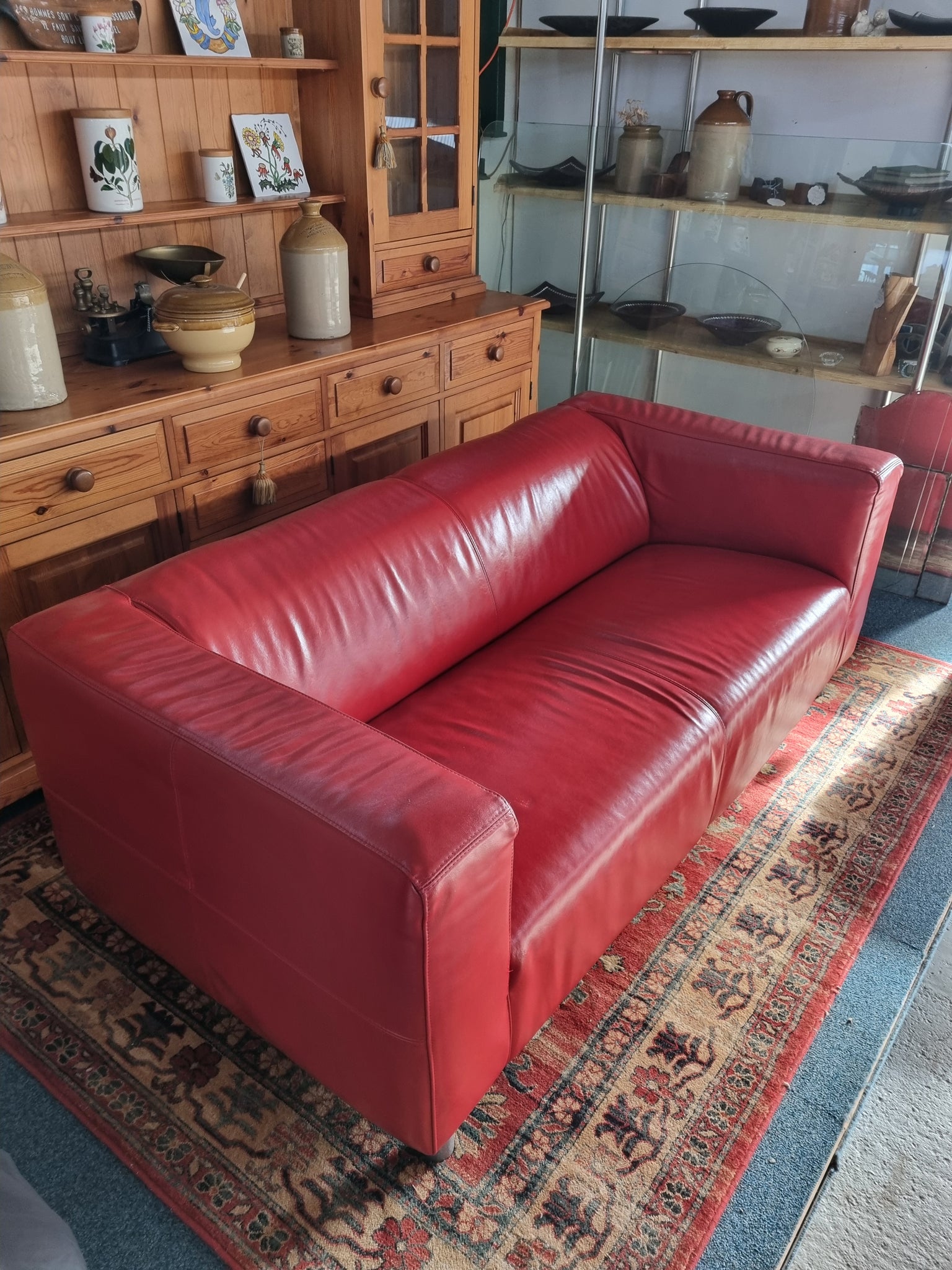 This is a super red leather sofa