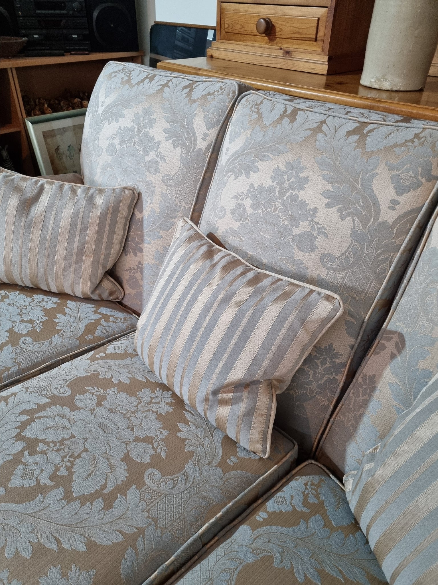 There are five scatter cushions in a contrasting stripe in the same colourway
