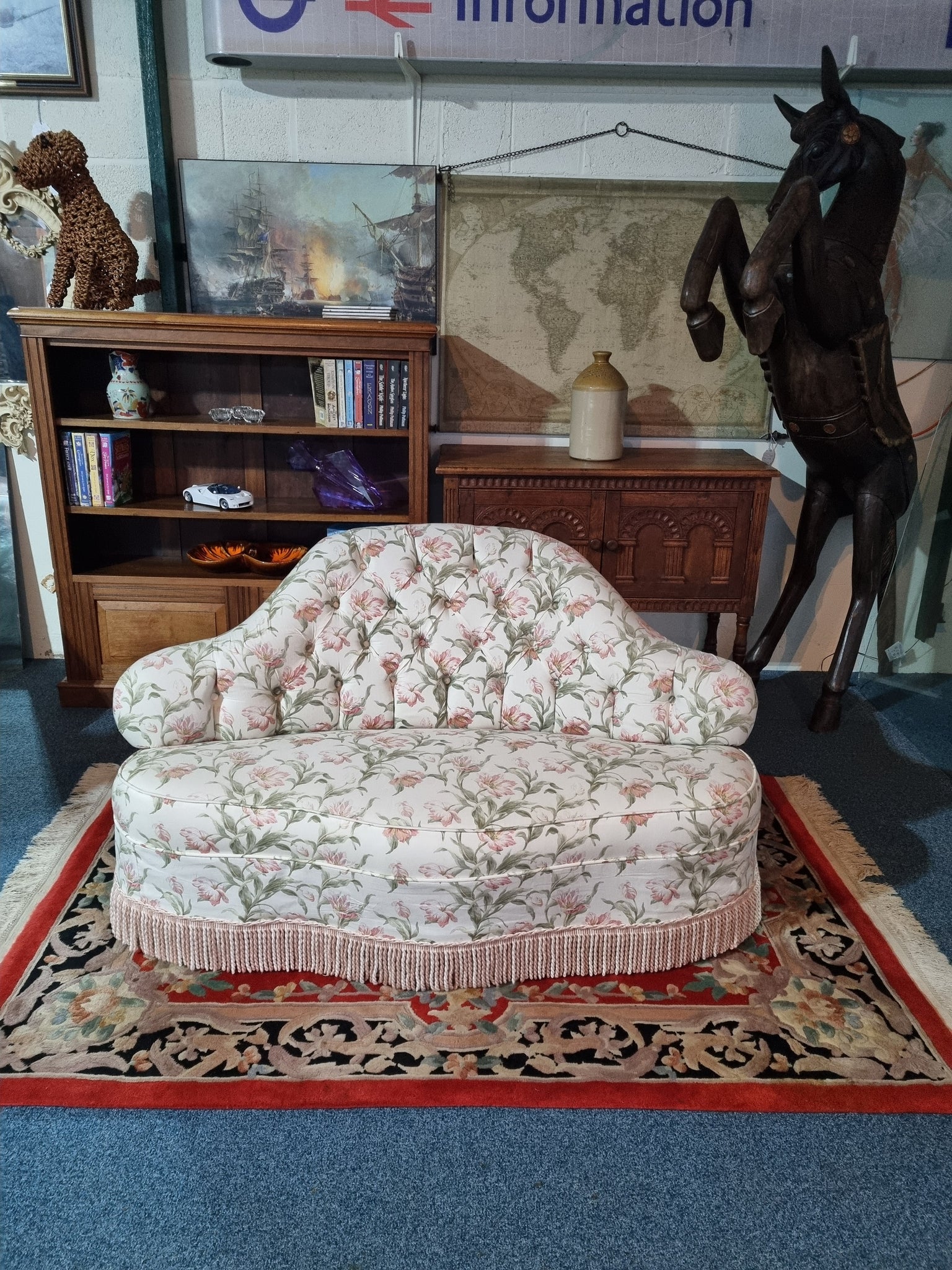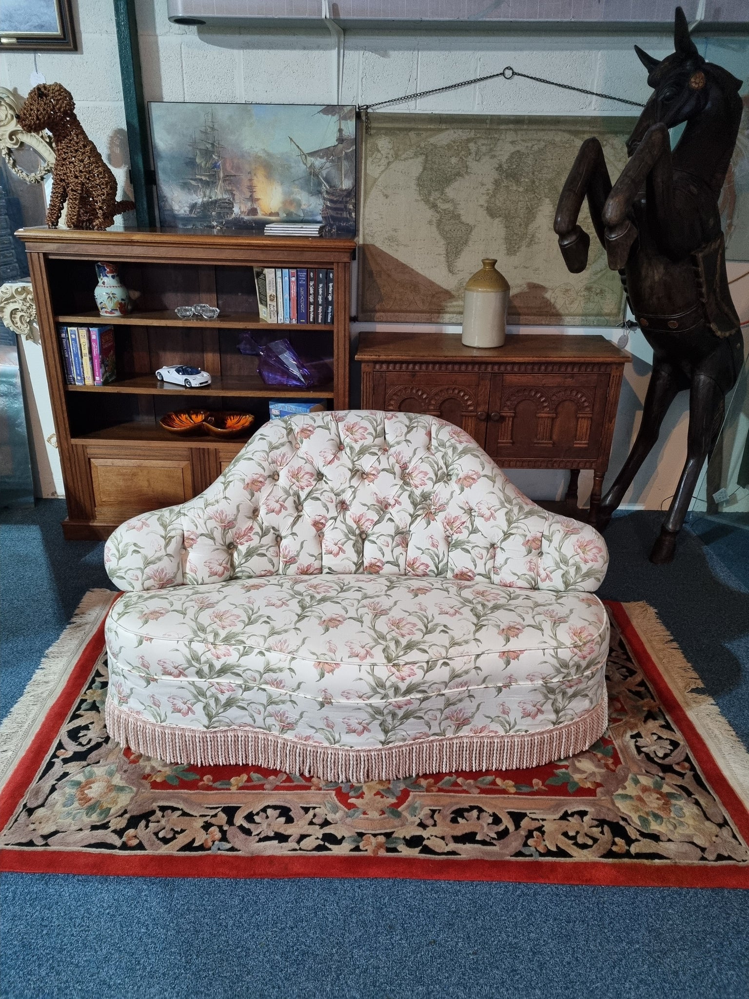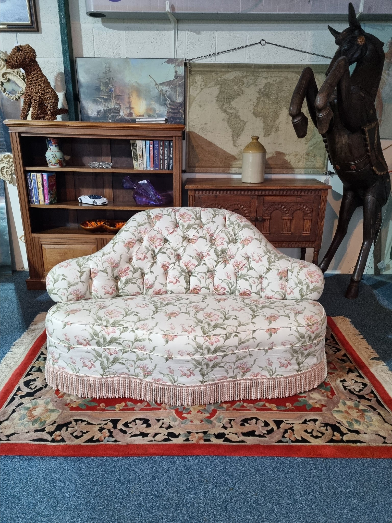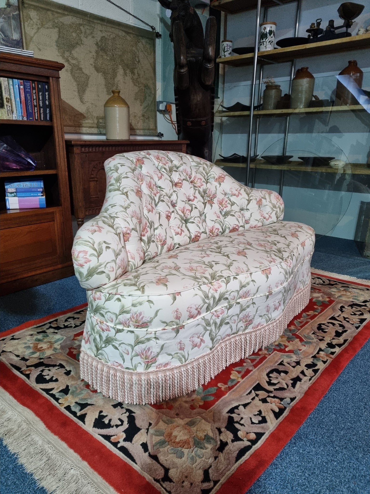 Victorian sofa upholstered in a floral button-back fabric